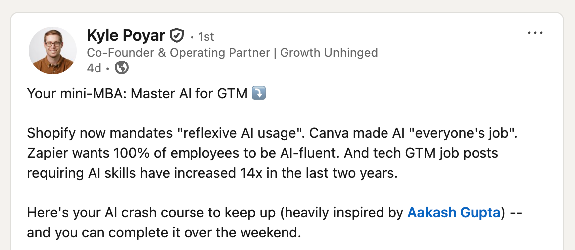 Kyle Poyar shares his mini-MBA, heavily inspired by Aakash Gupta, to help you catch up fast: